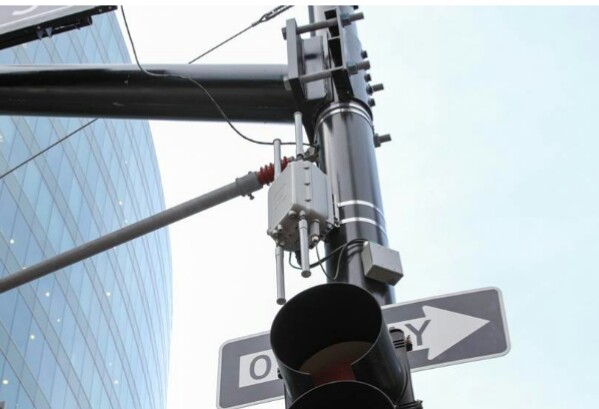 Kansas City is one of the first metropolitan areas in the U.S. to offer free public WiFi access. Routers like this one are positioned throughout the downtown area, granting users upload speeds of about 130 MB/s and download speeds of 150 MB/s