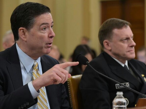 FBI Director James Comey (left) testifies in front of the House Intelligence Committee on Monday regarding Russian hacking during the 2016 election.