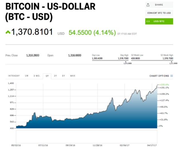 Bitcoin has had a wild start to 2017. It gained 20% in the opening week of the year before crashing 35% on fears China would crack down on trading. Since then, it has rallied more than 80%, shrugging off the crack down in China, the SEC’s rejection of two bitcoin ETFs, and fears developers could set up a “hard fork” that would split the cryptocurrency in two.