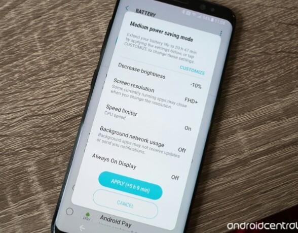 The power saving mode most people will use is the “mid” level, which tries to strike a balance between saving power and letting your phone do everything you need. When you tap “mid” you’ll see what it does — decrease brightness, lower the screen resolution, limit CPU performance and disable both background network usage and the Always On Display. It’ll add multiple hours to your battery life over the course of the day, but you probably wouldn’t want to use this all the time.